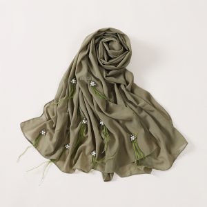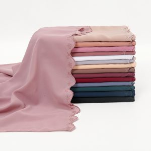 New Pearl Embroidered Lace Scarf for Women, Solid Color Malaysian Hijab Headscarf