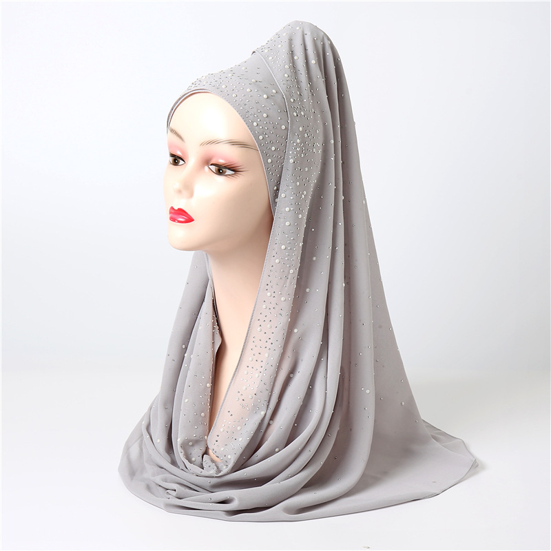 Pearl Chiffon Scarf for Women, Autumn/Winter, Versatile Solid Color, Travel Sunscreen Headscarf, Shawl, Extra Large Size