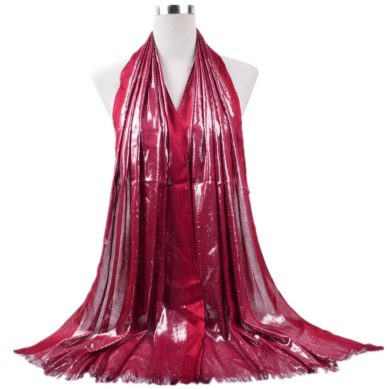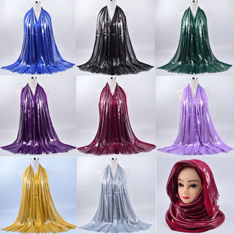 the Foreign Trade Spring and Autumn Collection: Cotton Golden Silk Scarf for Women in a Single Color with Tassel Fringes.