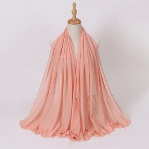 the Pearl Chiffon Turban Hijab! This exquisite piece combines the elegance of pearls, the delicacy of chiffon, and the allure of Indonesian and Malaysian craftsmanship.